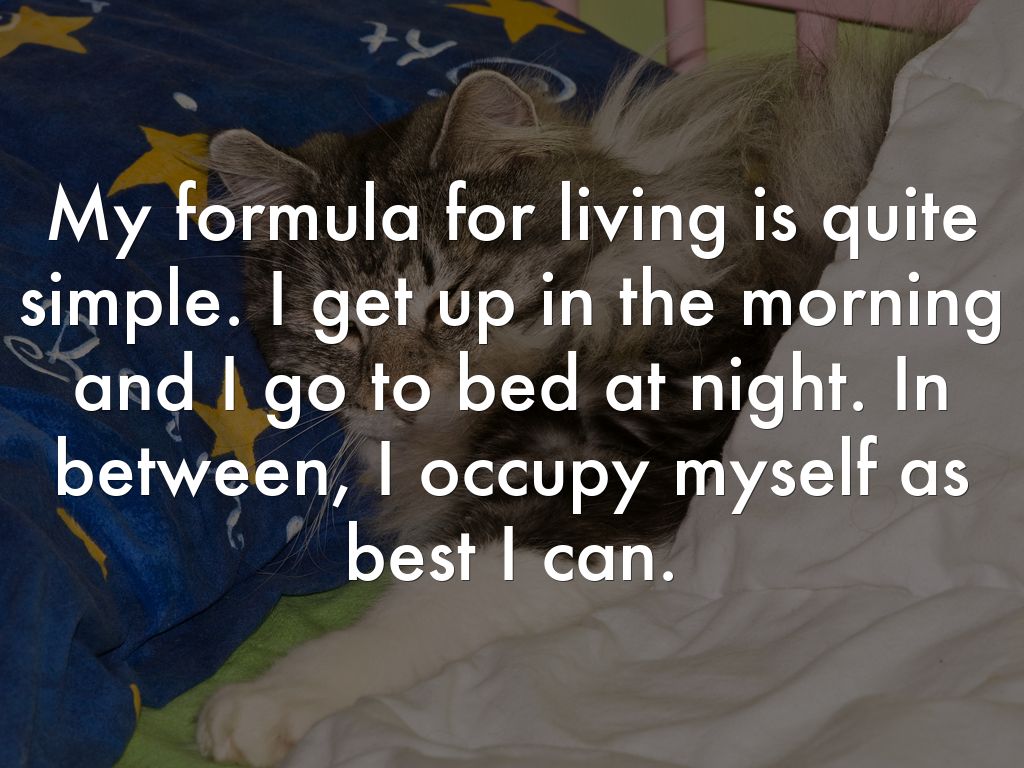 My formula for living is quite simple. I get up in the morning and I go to bed at night. In between, I occupy myself as best I can.