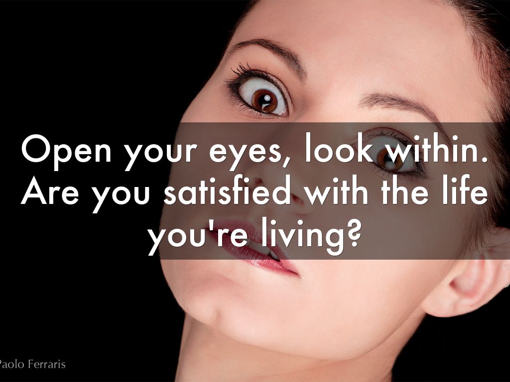 Open your eyes, look within. Are you satisfied with the life you're living?