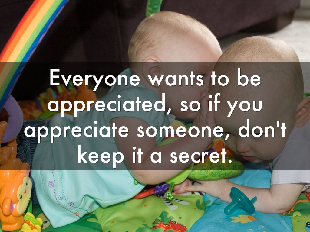 Everyone wants to be appreciated, so if you appreciate someone, don't keep it a secret.