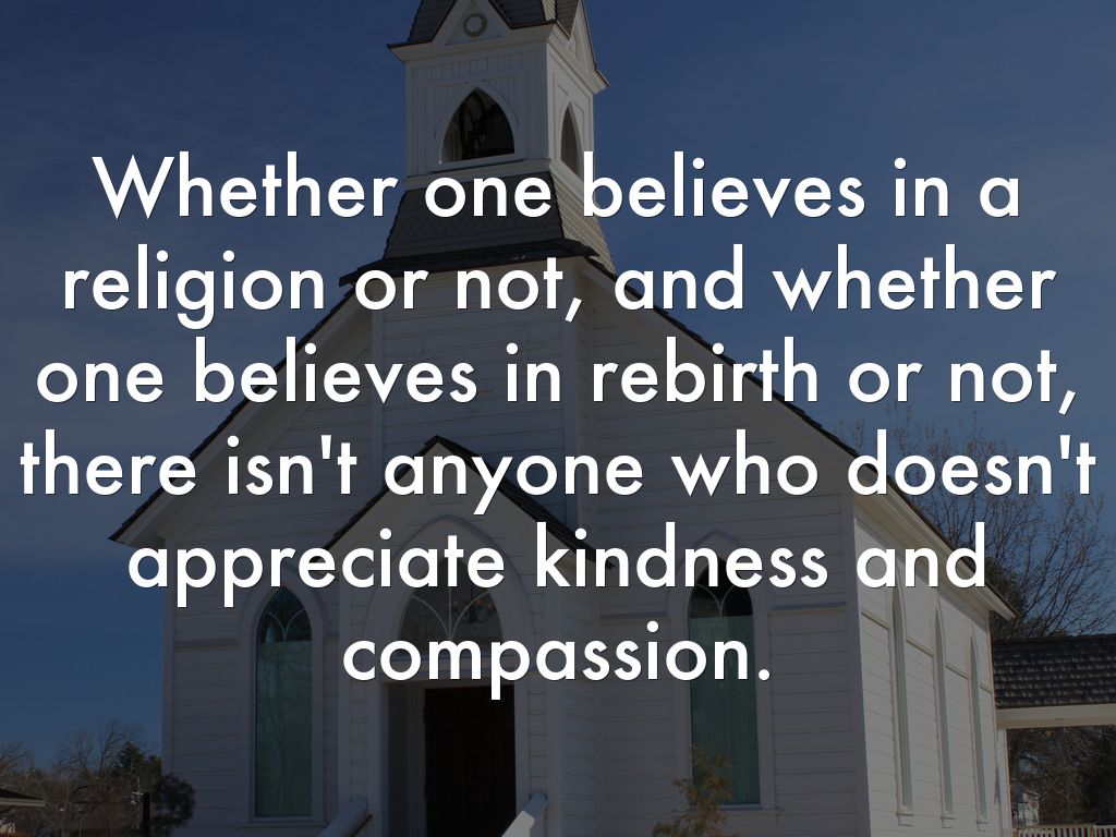 Whether one believes in a religion or not, and whether one believes in rebirth or not, there isn't anyone who doesn't appreciate kindness and compassion.