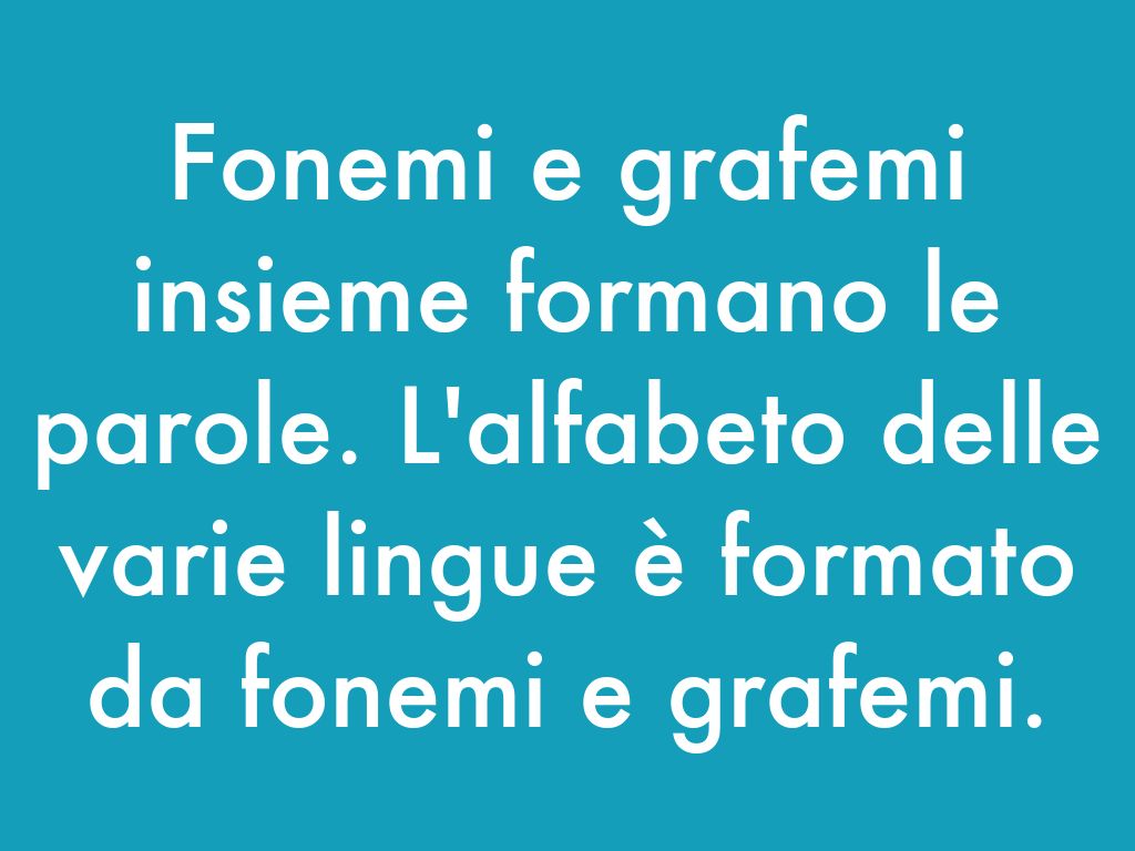 Fonemi e grafemi insieme formano le parole. L'alfabeto delle varie lingue è formato da fonemi e grafemi.