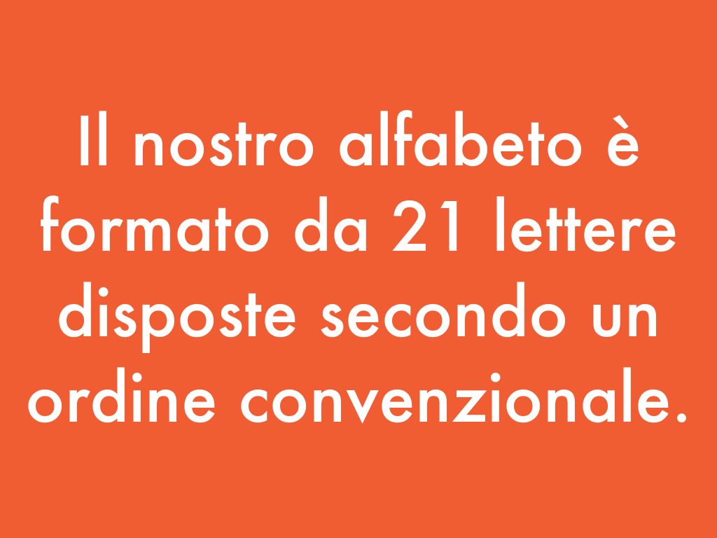 Il nostro alfabeto è formato da 21 lettere disposte secondo un ordine convenzionale.