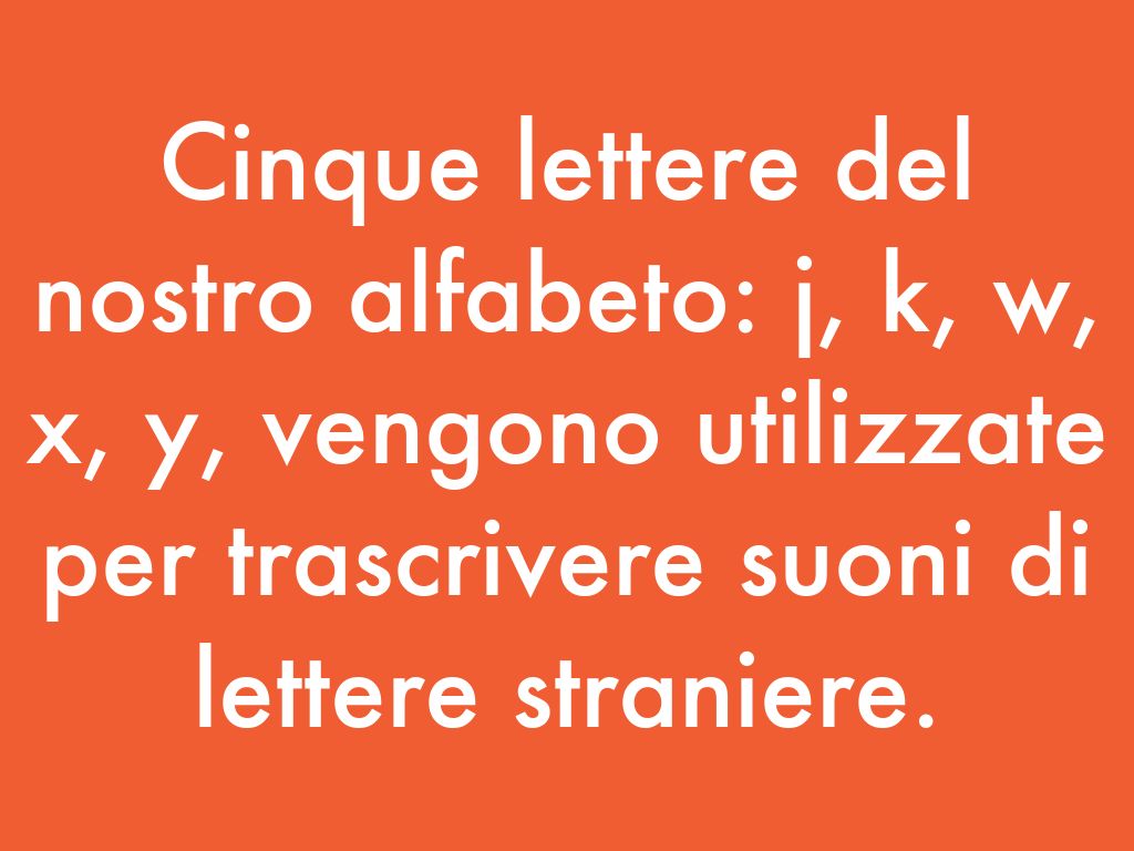 Cinque lettere del nostro alfabeto: j, k, w, x, y, vengono utilizzate per trascrivere suoni di lettere straniere.