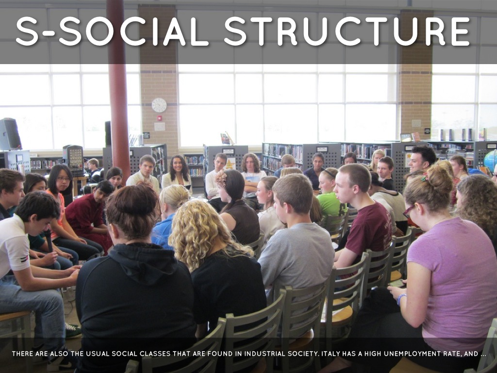 THERE ARE ALSO THE USUAL SOCIAL CLASSES THAT ARE FOUND IN INDUSTRIAL SOCIETY. ITALY HAS A HIGH UNEMPLOYMENT RATE, AND DIFFERENCES BETWEEN RICH AND POOR ARE NOTICEABLE. NEW IMMIGRANTS STAND OUT SINCE THEY COME FROM POORER COUNTRIES. THE GOVERNMENT HAS HAD A VAST SOCIAL WELFARE NETWORK THAT HAS BEEN CUT IN RECENT YEARS TO FIT THE REQUIREMENTS OF THE EUROPEAN UNION. THESE BUDGET CUTS HAVE FALLEN ON THE POORER STRATA OF SOCIETY.