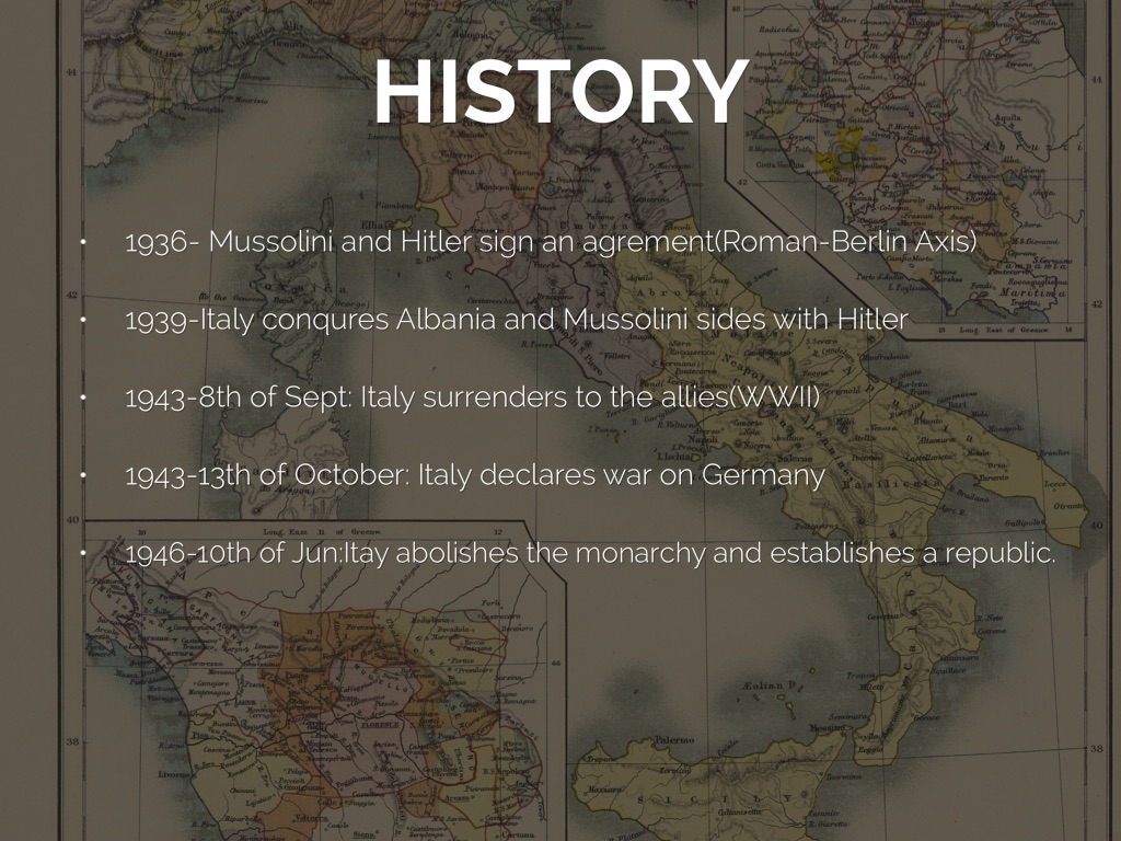 • 1936- Mussolini and Hitler sign an agrement(Roman-Berlin Axis)