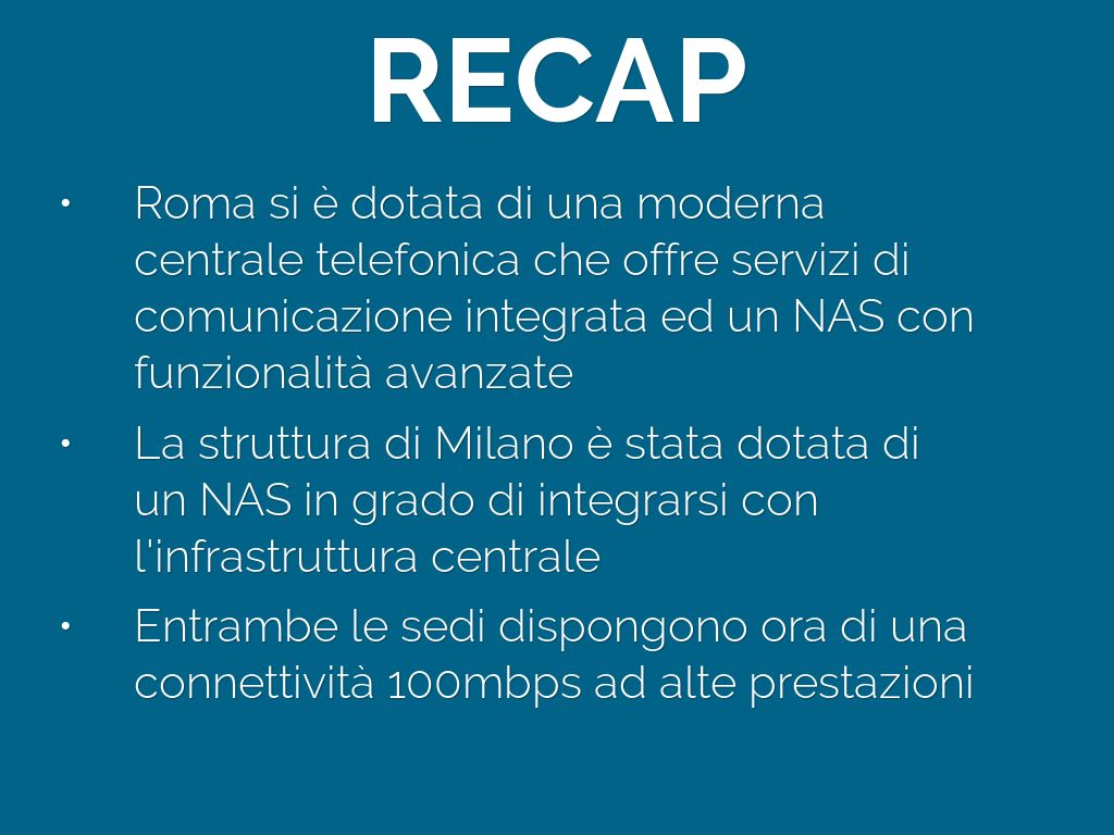 La struttura di Milano è stata dotata di un NAS in grado di integrarsi con l'infrastruttura centrale
