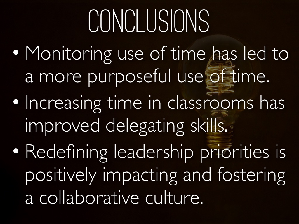 • Monitoring use of time has led to a more purposeful use of time.