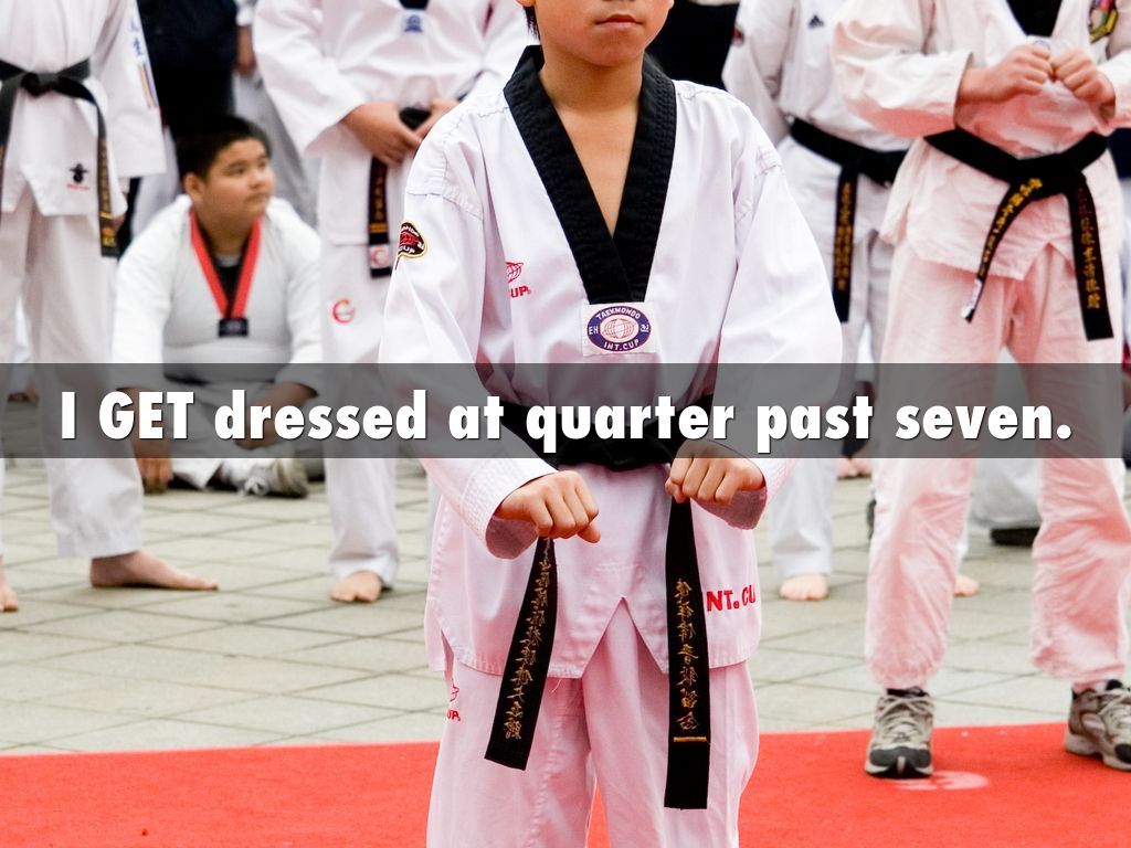 I GET dressed at quarter past seven.