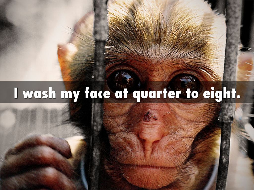 I wash my face at quarter to eight.