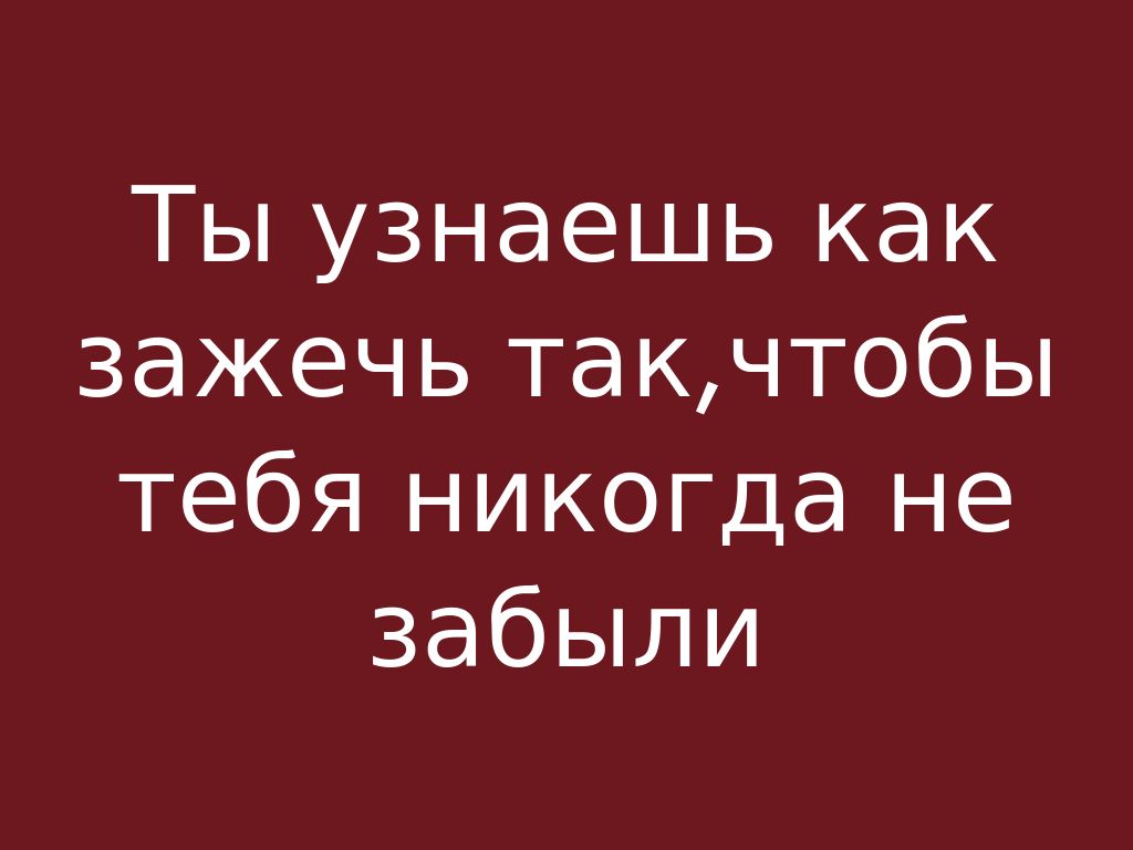 Ты узнаешь как зажечь так,чтобы тебя никогда не забыли