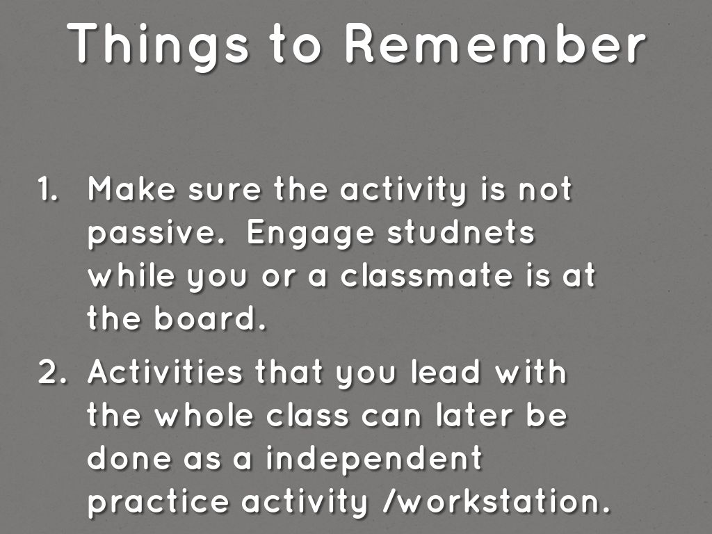 • Make sure the activity is not passive. Engage studnets while you or a classmate is at the board.