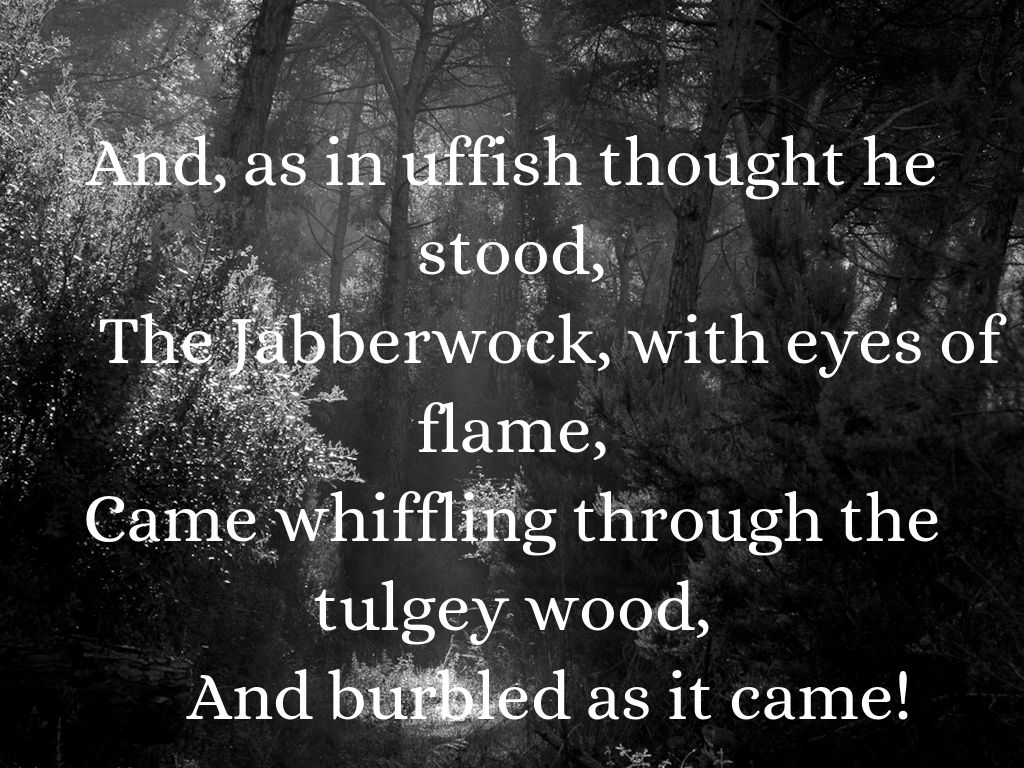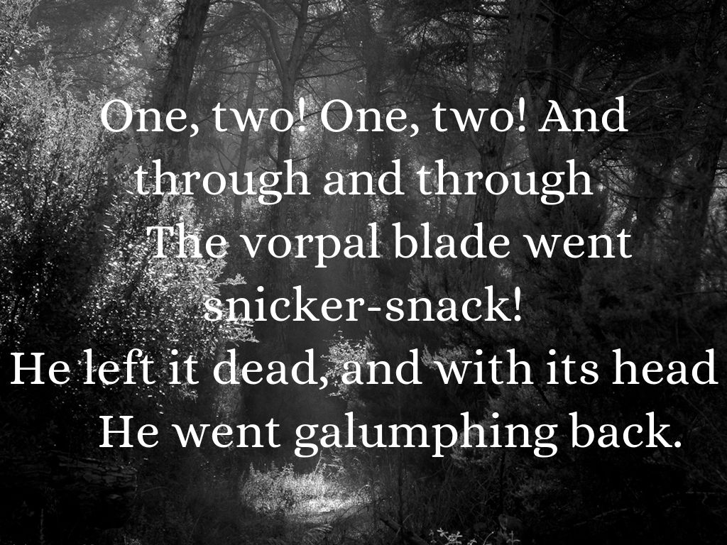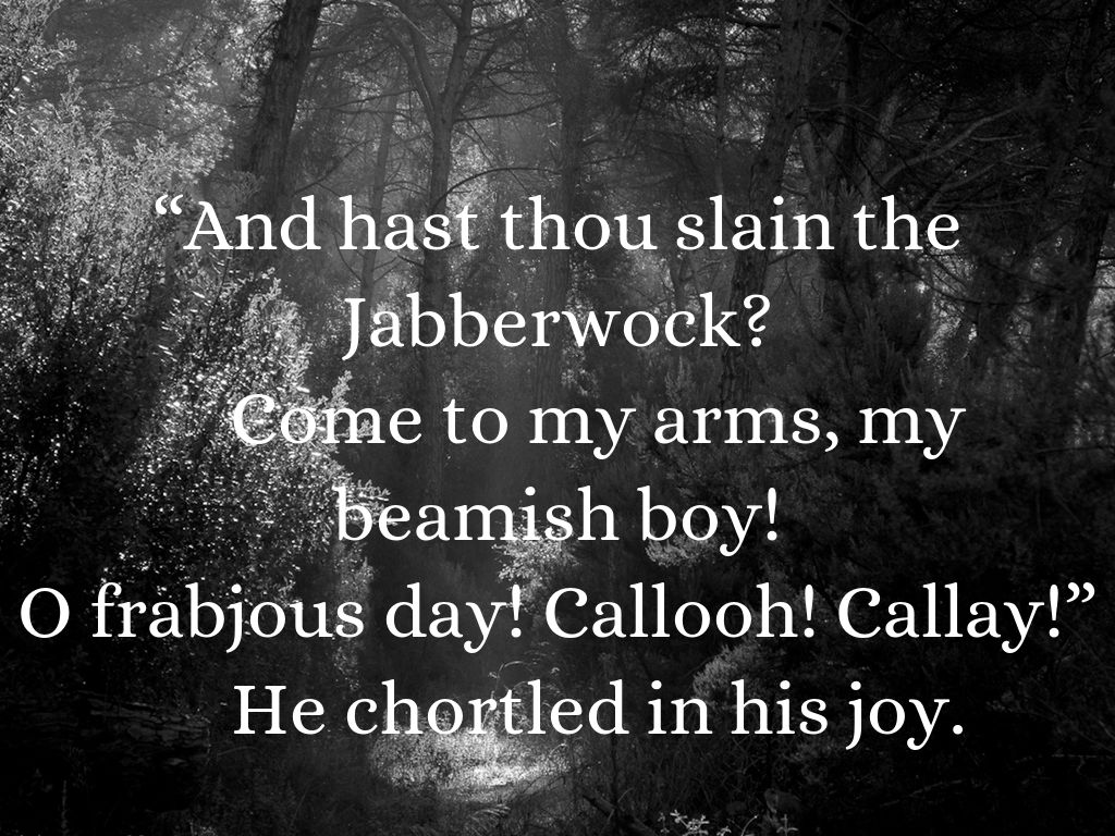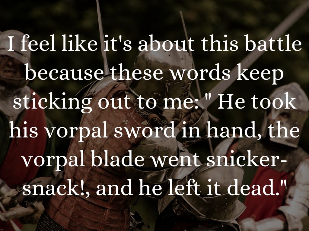 I feel like it's about this battle because these words keep sticking out to me: " He took his vorpal sword in hand, the vorpal blade went snicker-snack!, and he left it dead."