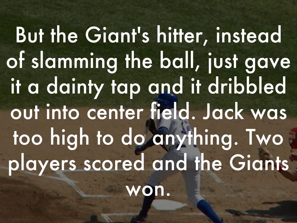 But the Giant's hitter, instead of slamming the ball, just gave it a dainty tap and it dribbled out into center field. Jack was too high to do anything. Two players scored and the Giants won.