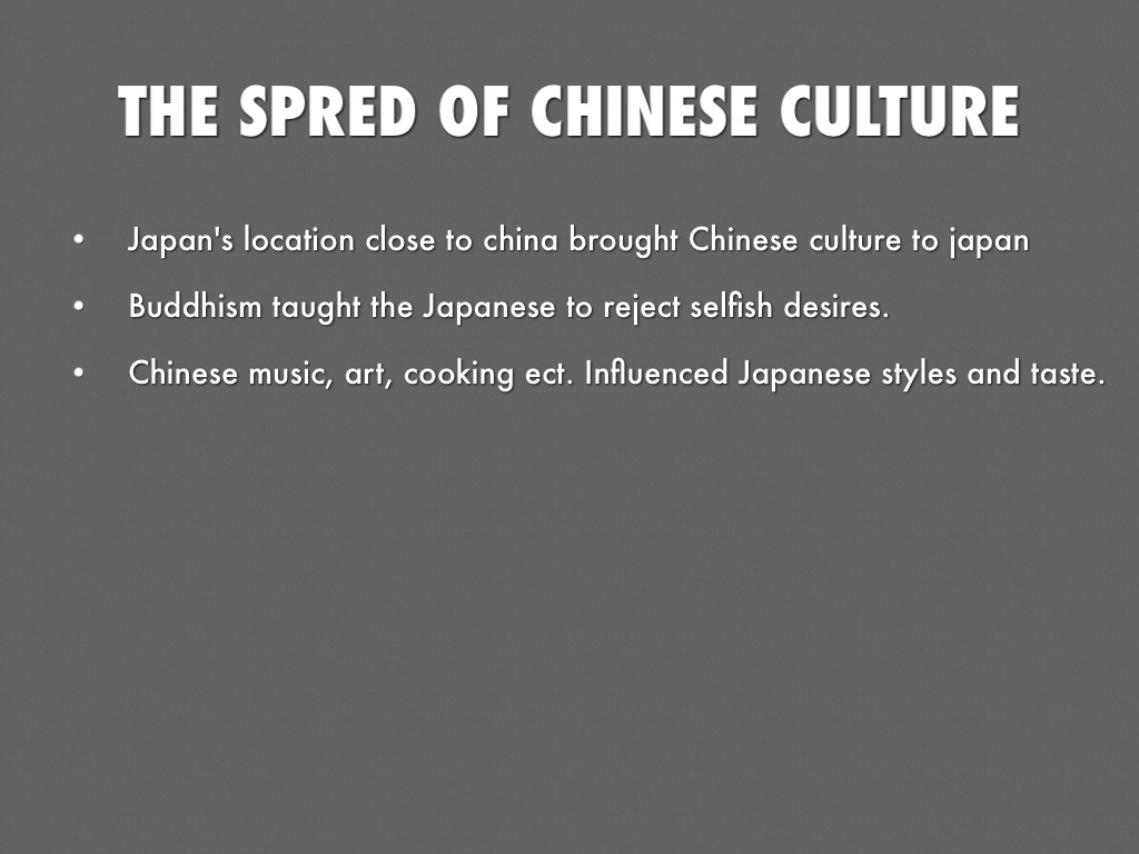 Chinese music, art, cooking ect. Influenced Japanese styles and taste.