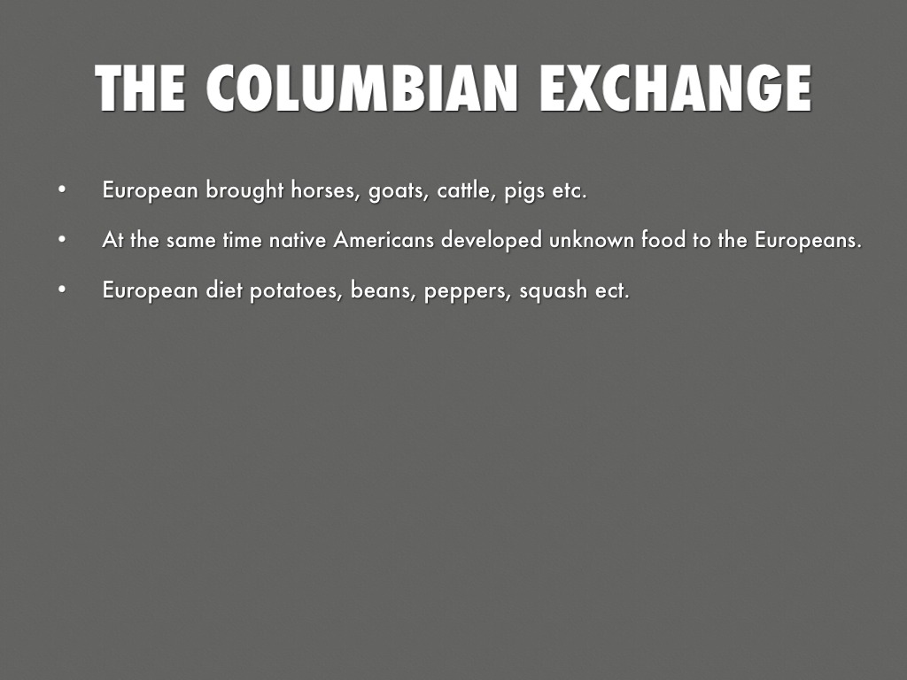 New plants,animals, ideas and even diseases where exchanged between the people.