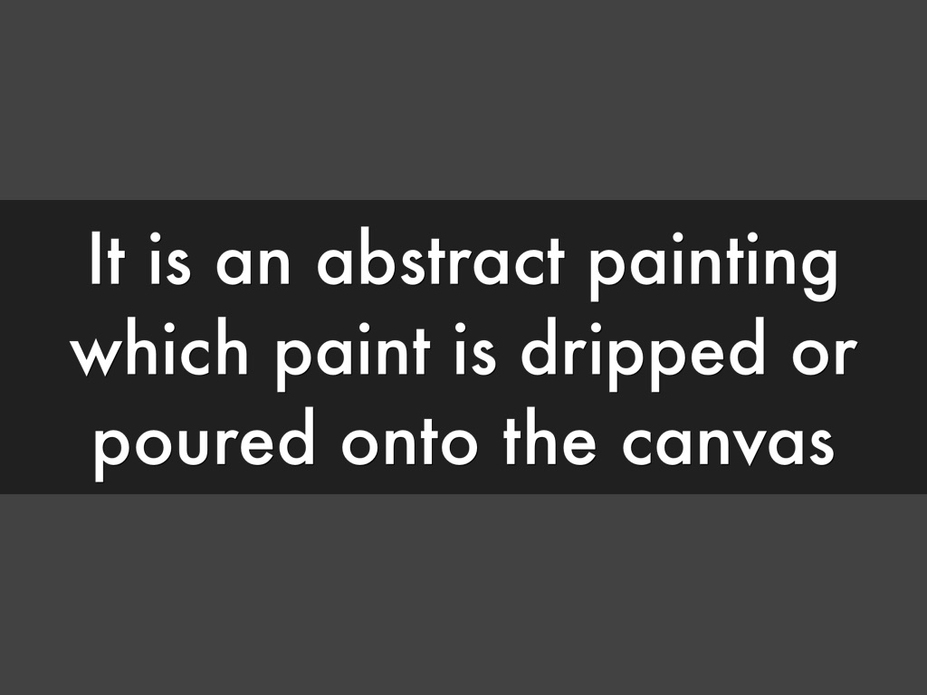 It is an abstract painting which paint is dripped or poured onto the canvas