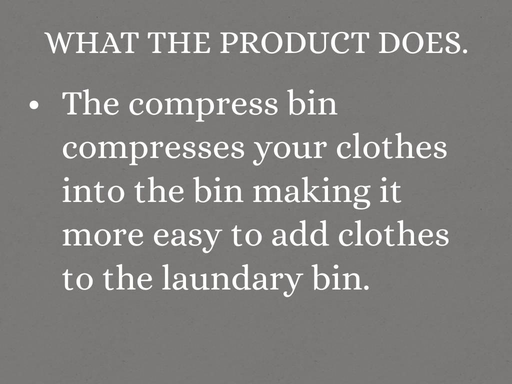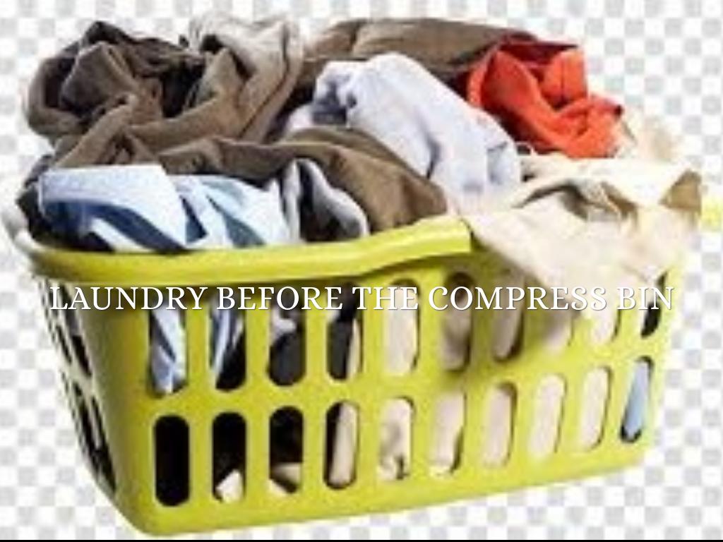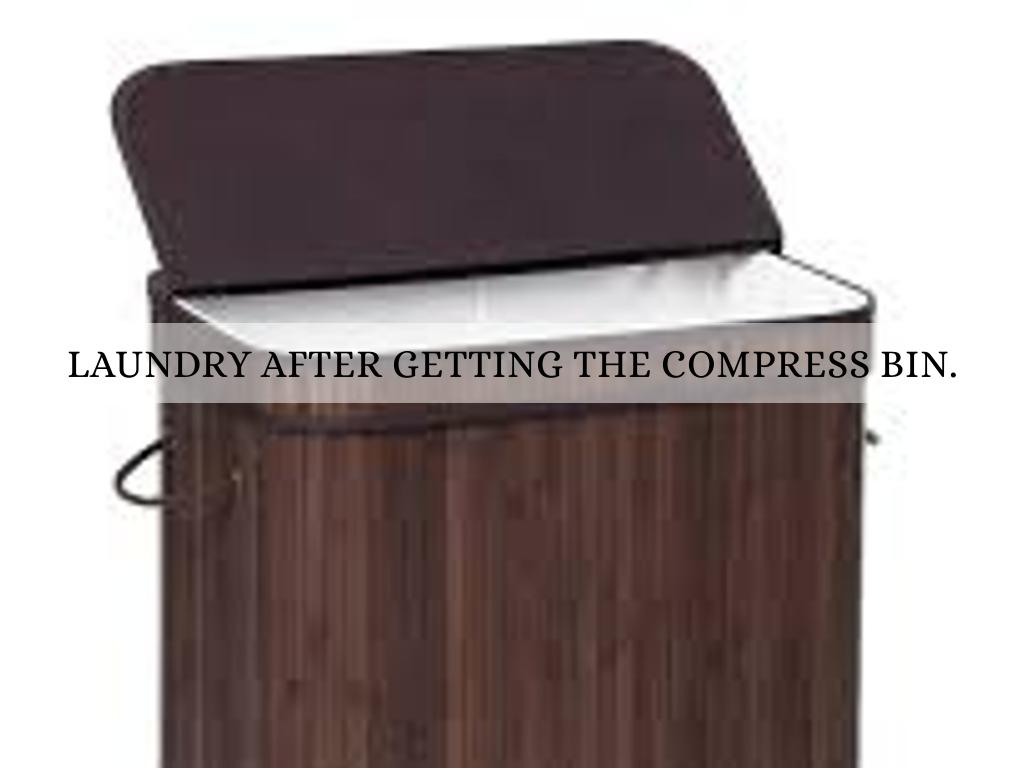 The compress bin compresses your clothes into the bin making it more easy to add clothes to the laundary bin.