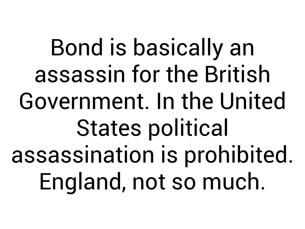 Bond is basically an assassin for the British Government. In the United States political assassination is prohibited. England, not so much.