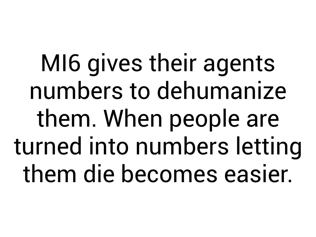 MI6 gives their agents numbers to dehumanize them. When people are turned into numbers letting them die becomes easier.