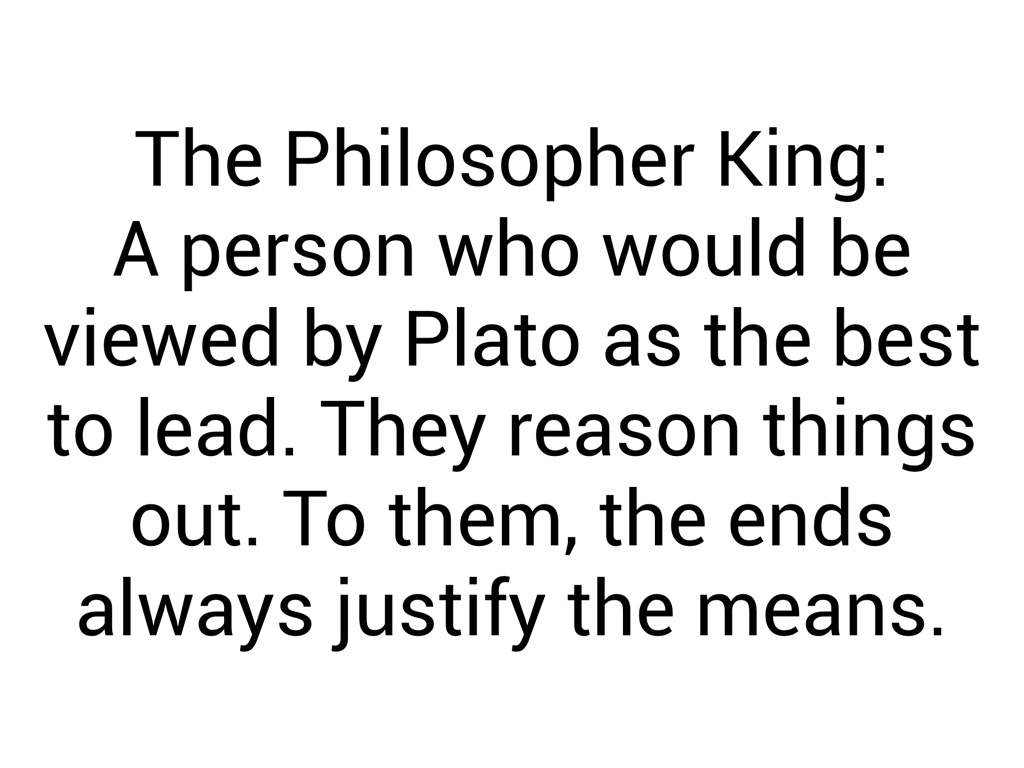 A person who would be viewed by Plato as the best to lead. They reason things out. To them, the ends always justify the means.
