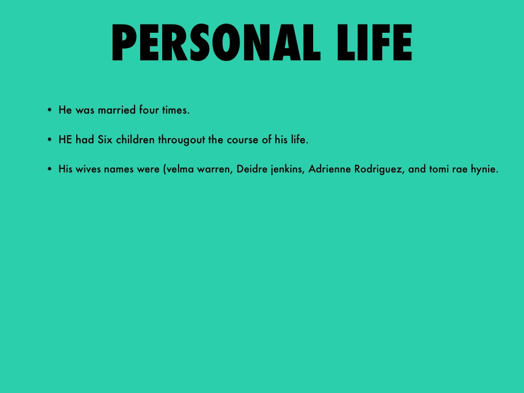 His wives names were (velma warren, Deidre jenkins, Adrienne Rodriguez, and tomi rae hynie.