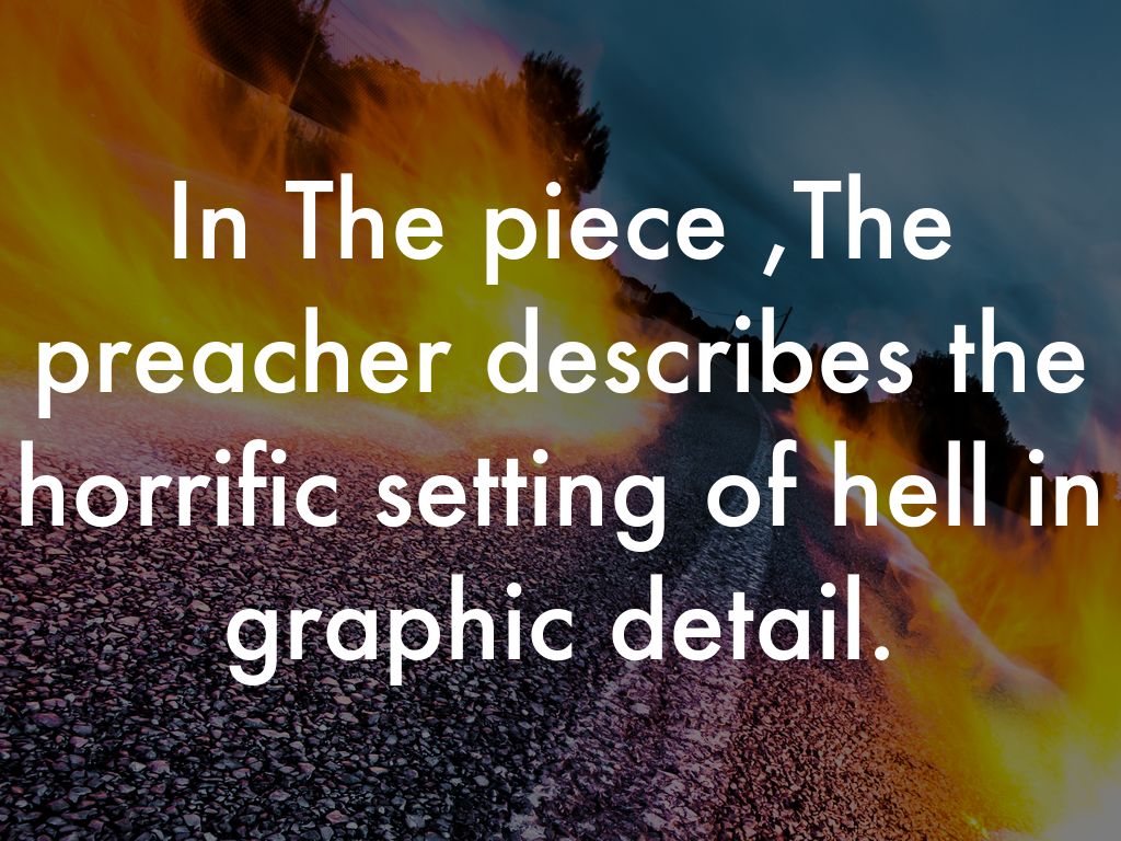 In The piece ,The preacher describes the horrific setting of hell in graphic detail.