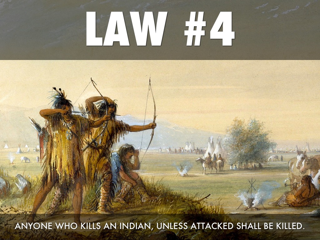 ANYONE WHO KILLS AN INDIAN, UNLESS ATTACKED SHALL BE KILLED.