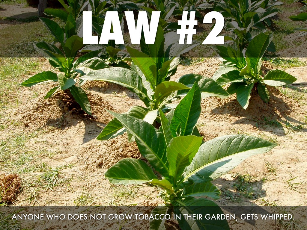 ANYONE WHO DOES NOT GROW TOBACCO IN THEIR GARDEN, GETS WHIPPED.