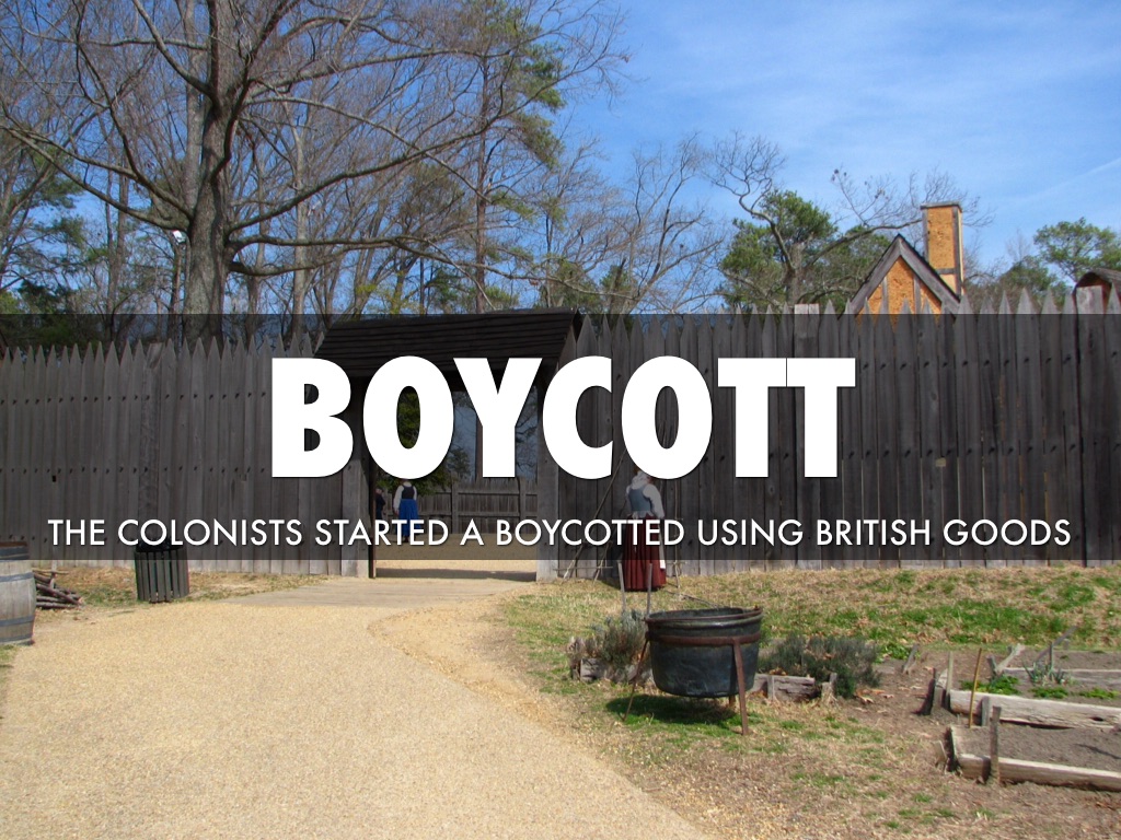 THE COLONISTS STARTED A BOYCOTTED USING BRITISH GOODS