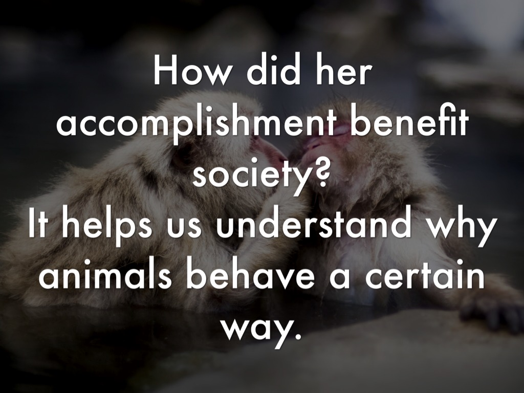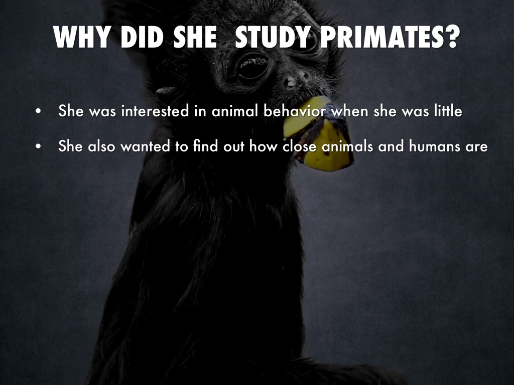 One morning, while Jane was watching two chimpanzees at a termite mound, she saw one of them pick up a twig, tear the leaves off and put it in the hole. He was using the twig to get the termites out of the hole. Jane learned that chimpanzees use tools, like humans!