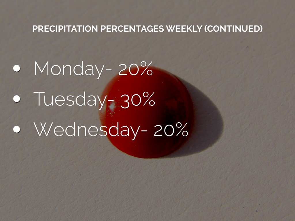 PRECIPITATION PERCENTAGES WEEKLY (CONTINUED)