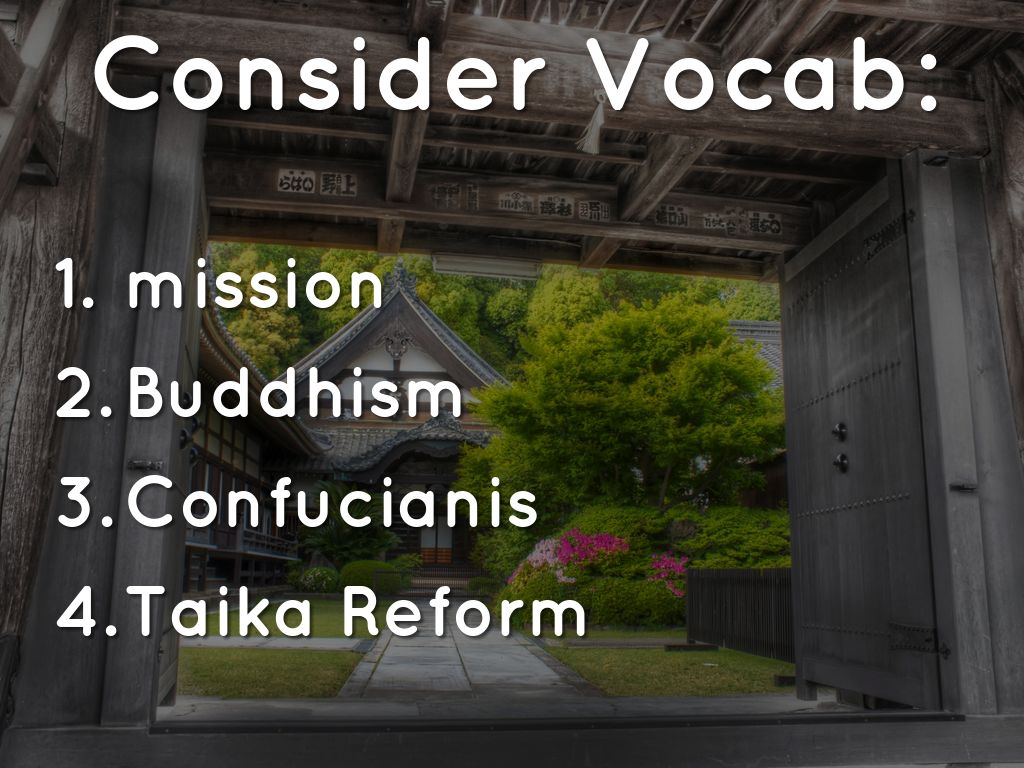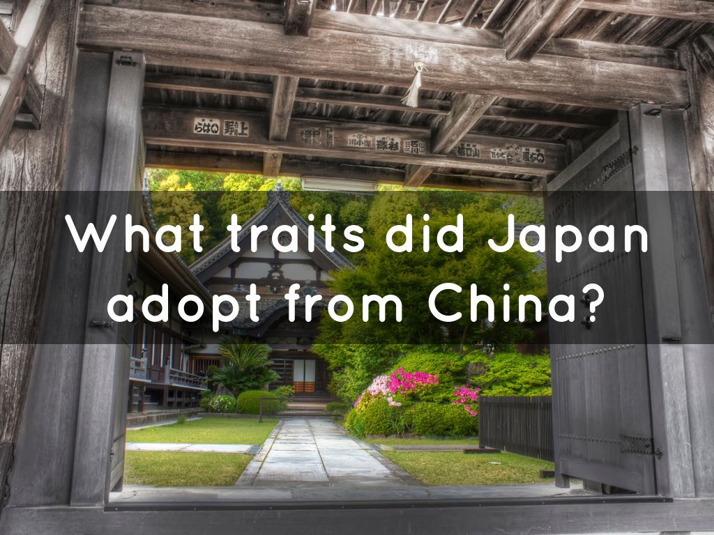 2) Through the process of cultural diffusion, Japan adopted many Chinese cultural traits. Analyze and explain how, why and what Japan adopted from China and the ways in which that affected Japan’s culture.