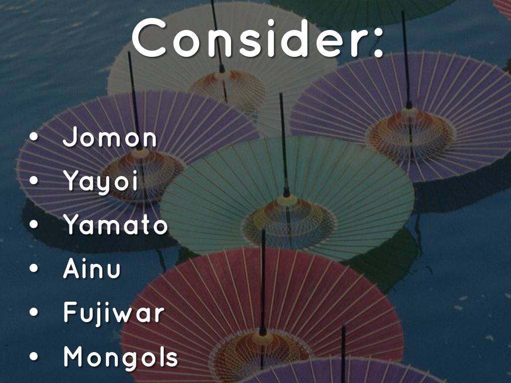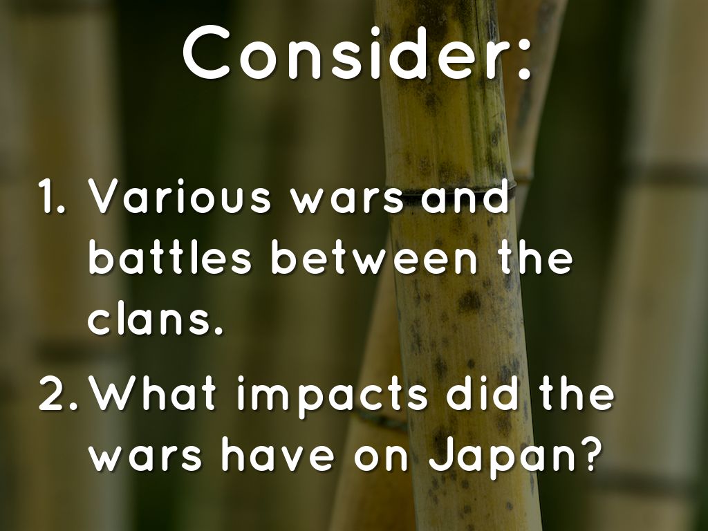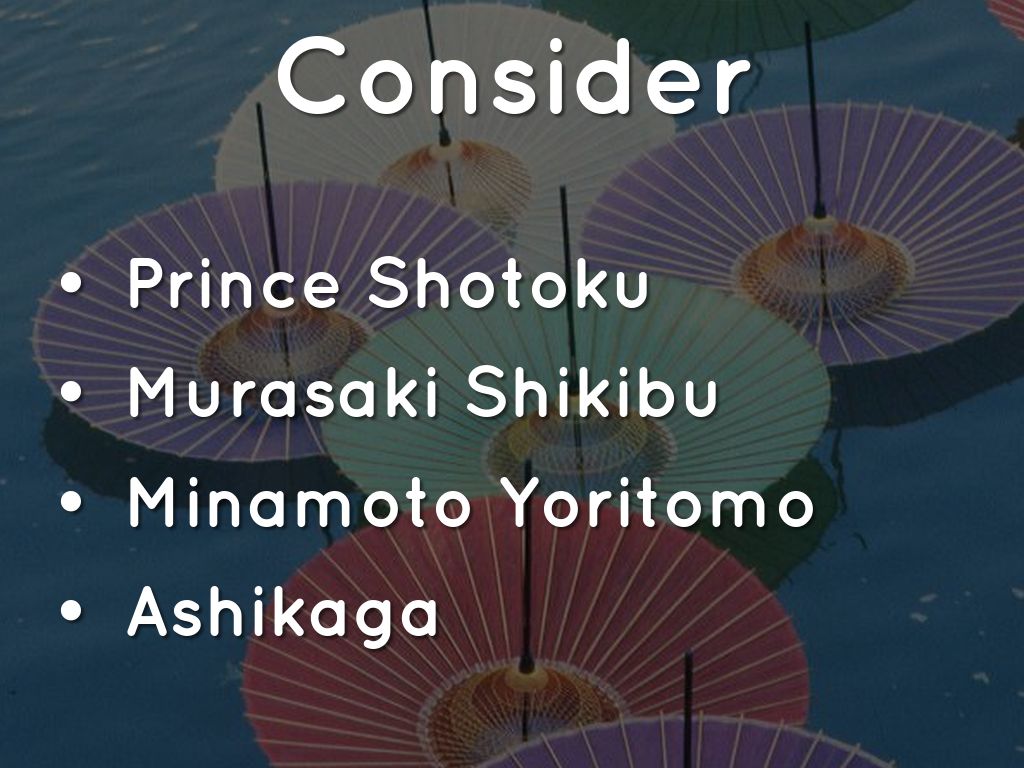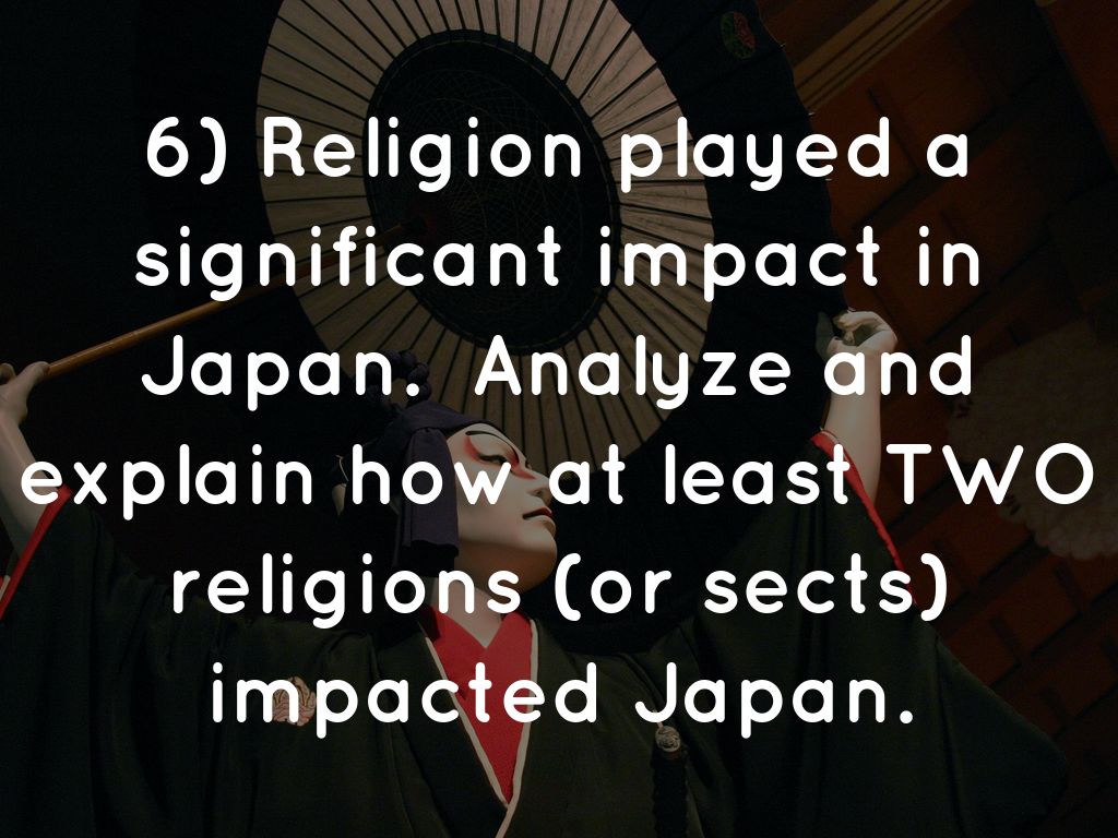 5) There were many notable Clans, Families, and People that influenced Japan’s development as a country. Pick ONE and justify why your choice influenced Japan (and even the world, if you choose) more significantly than any other.