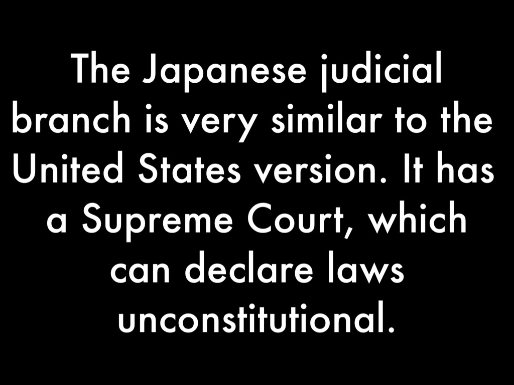 The Japanese judicial branch is very similar to the United States version. It has a Supreme Court, which can declare laws unconstitutional.