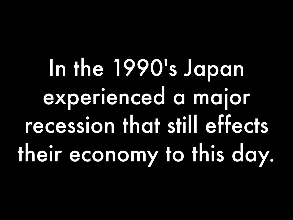 In the 1990's Japan experienced a major recession that still effects their economy to this day.