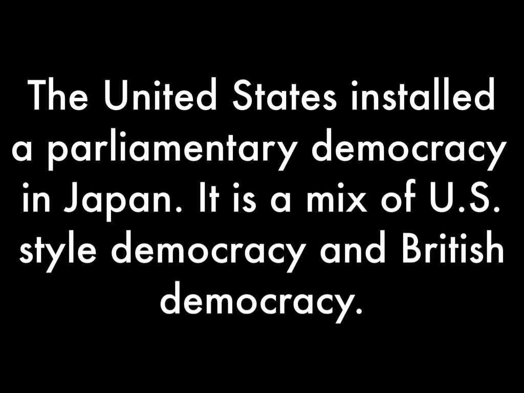 The United States installed a parliamentary democracy in Japan. It is a mix of U.S. style democracy and British democracy.