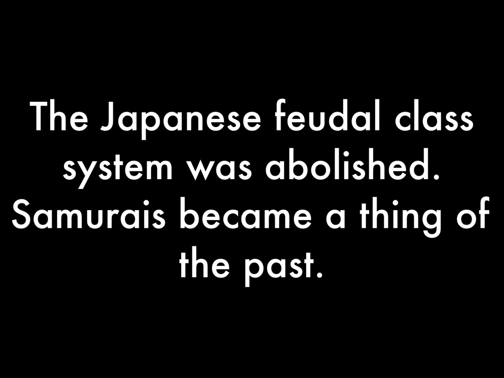 The Japanese feudal class system was abolished. Samurais became a thing of the past.
