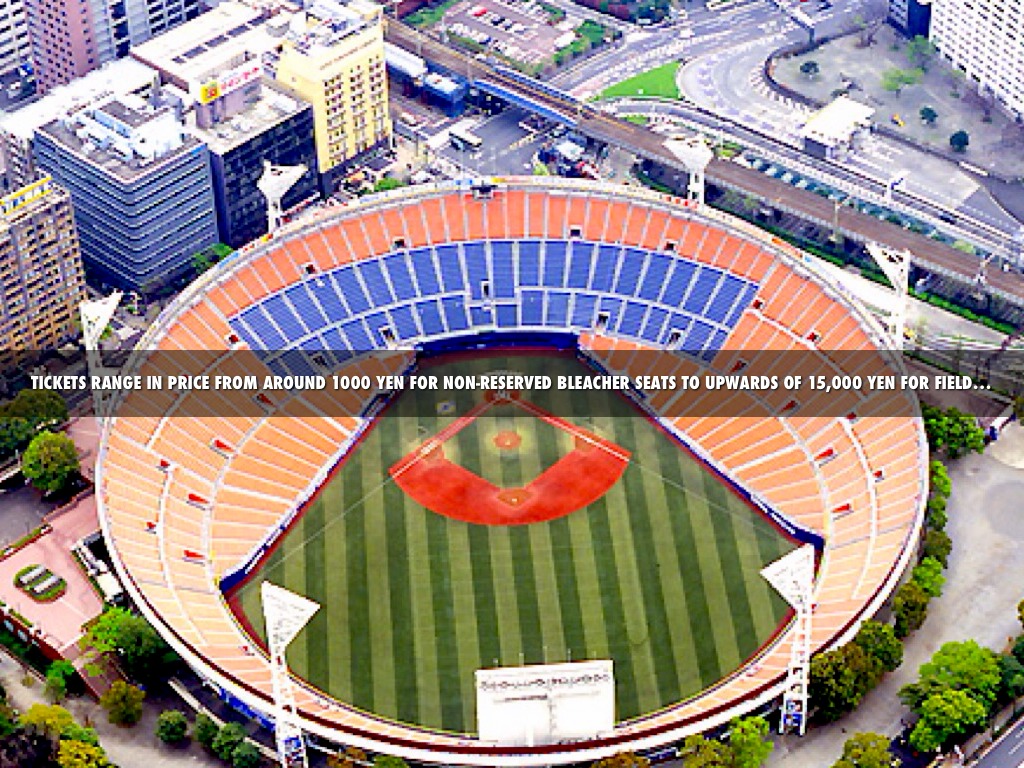 Tickets range in price from around 1000 yen for non-reserved bleacher seats to upwards of 15,000 yen for field level seats