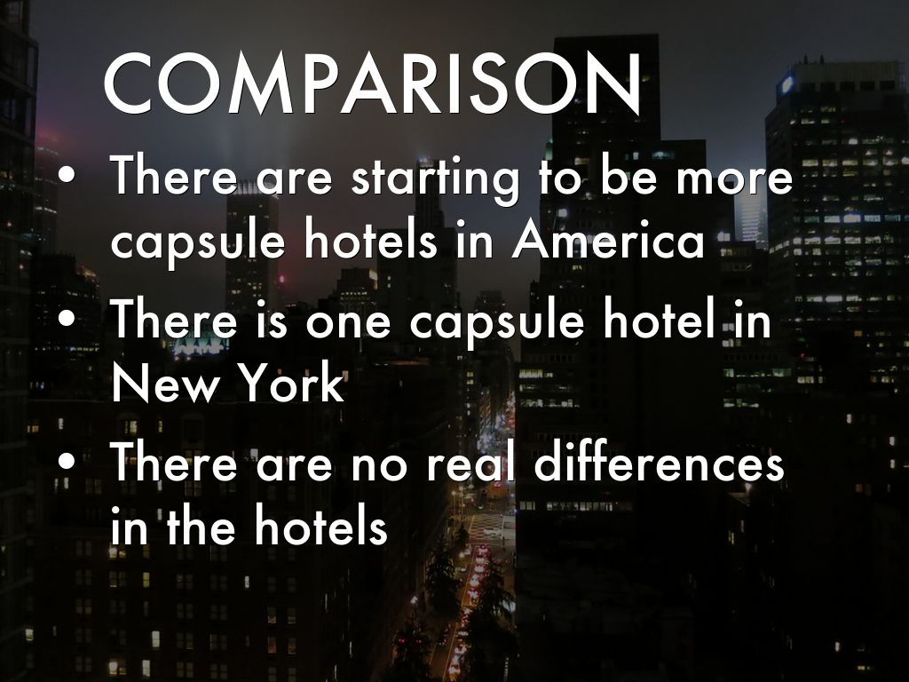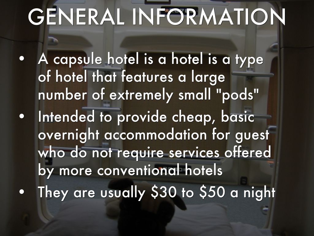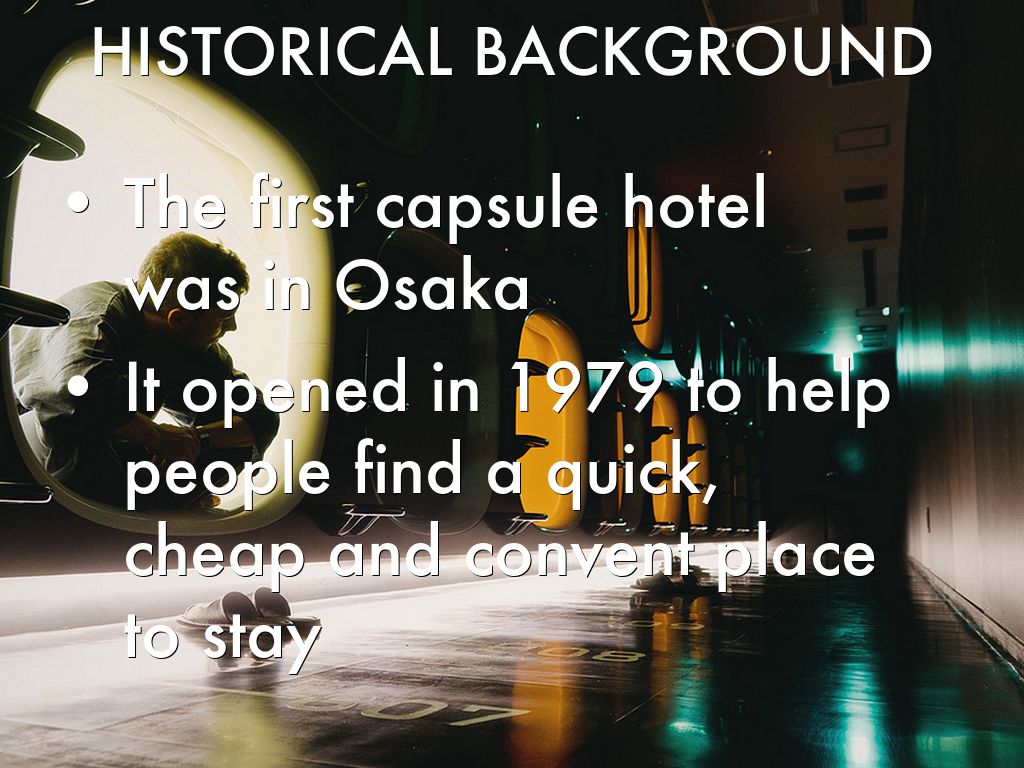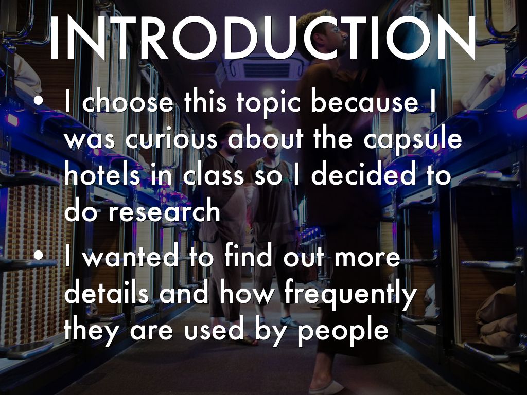 I choose this topic because I was curious about the capsule hotels in class so I decided to do research
