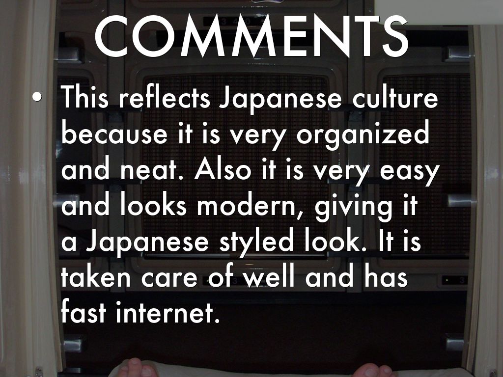 This reflects Japanese culture because it is very organized and neat. Also it is very easy and looks modern, giving it a Japanese styled look. It is taken care of well and has fast internet.