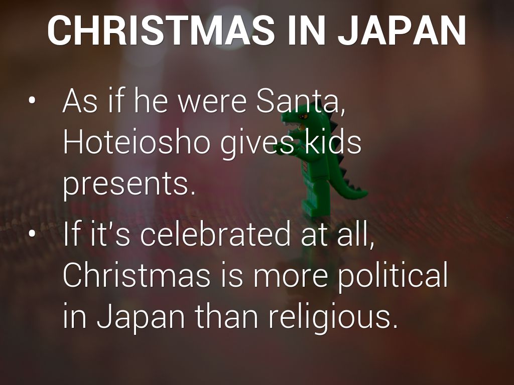 If it's celebrated at all, Christmas is more political in Japan than religious.