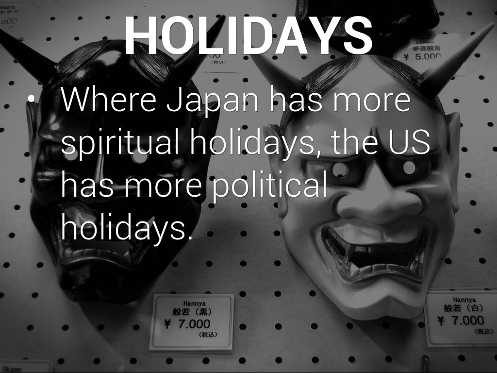 Where Japan has more spiritual holidays, the US has more political holidays.