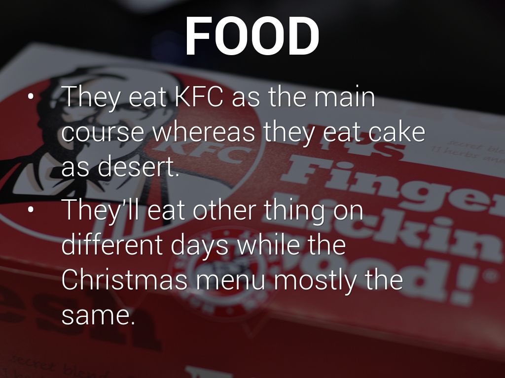 They'll eat other thing on different days while the Christmas menu mostly the same.