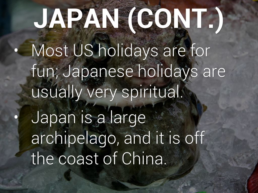 Most US holidays are for fun; Japanese holidays are usually very spiritual.