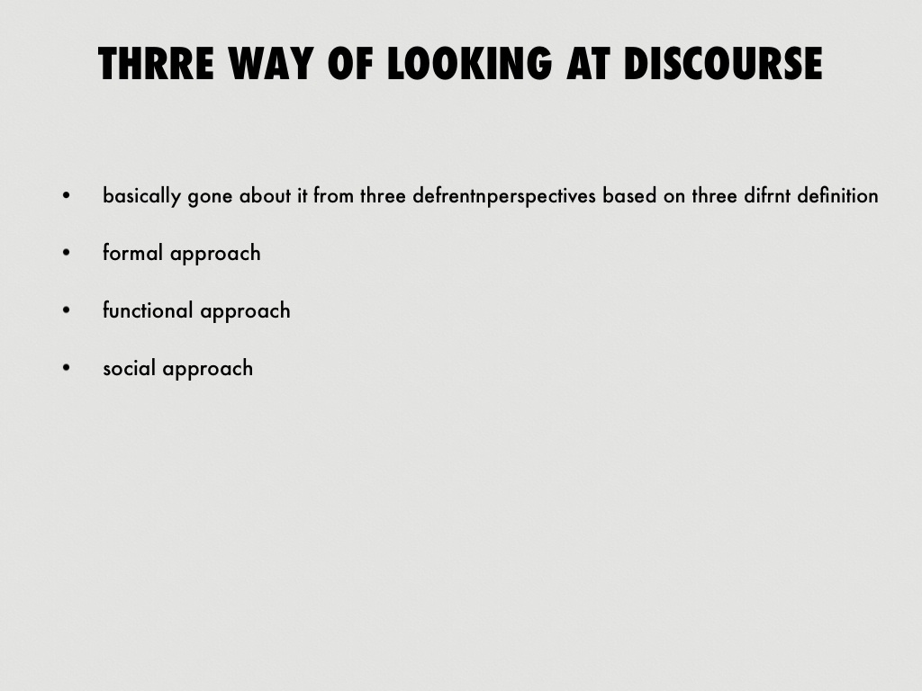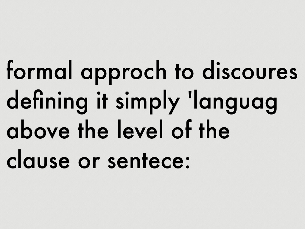 formal approch to discoures defining it simply 'languag above the level of the clause or sentece: