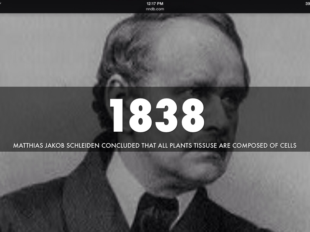 MATTHIAS JAKOB SCHLEIDEN CONCLUDED THAT ALL PLANTS TISSUSE ARE COMPOSED OF CELLS