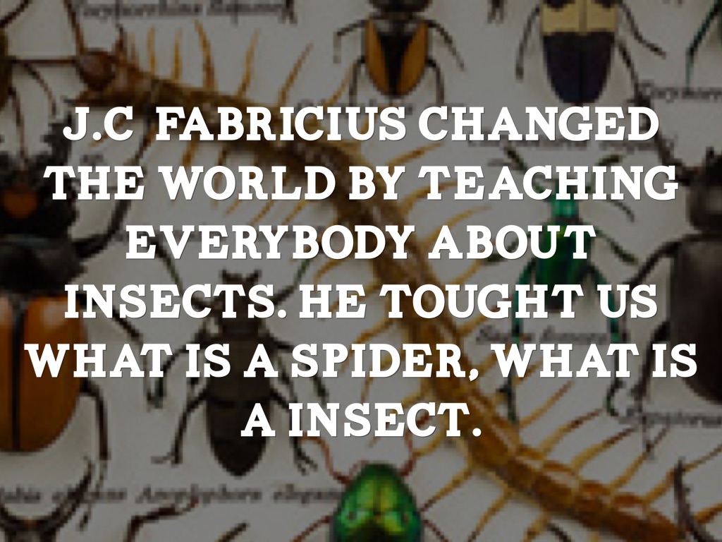 J.C fabricius changed the world by teaching everybody about insects. He tought us what is a spider, what is a insect.