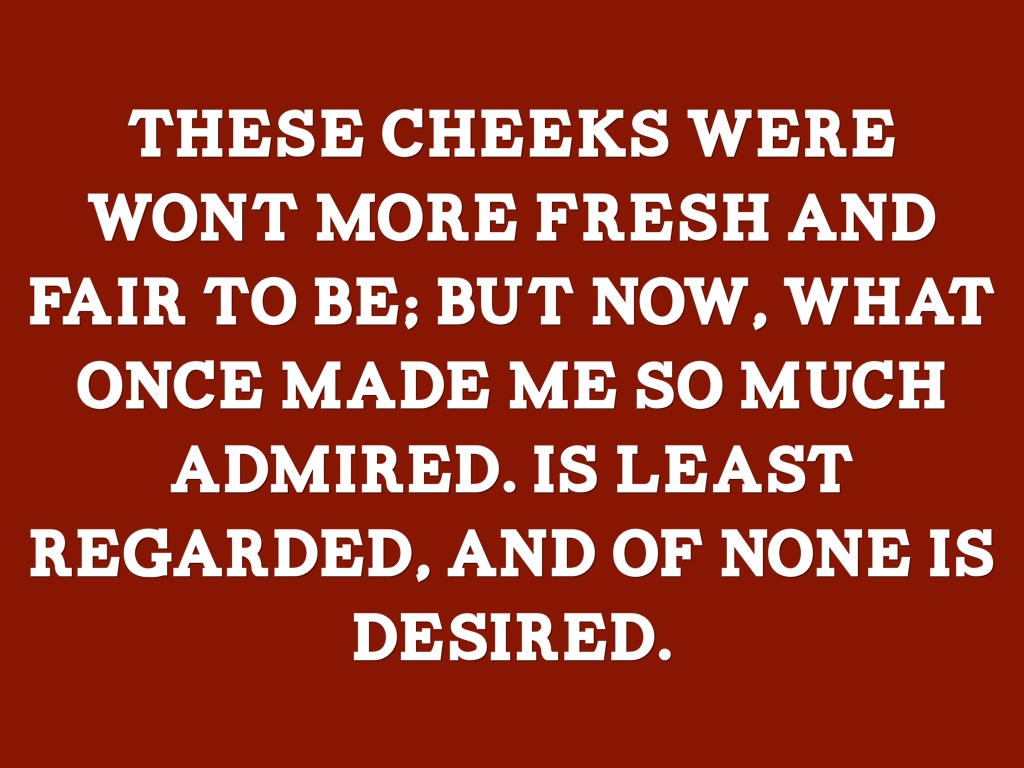 These cheeks were wont more fresh and fair to be; But now, what once made me so much admired. Is least regarded, and of none is desired.