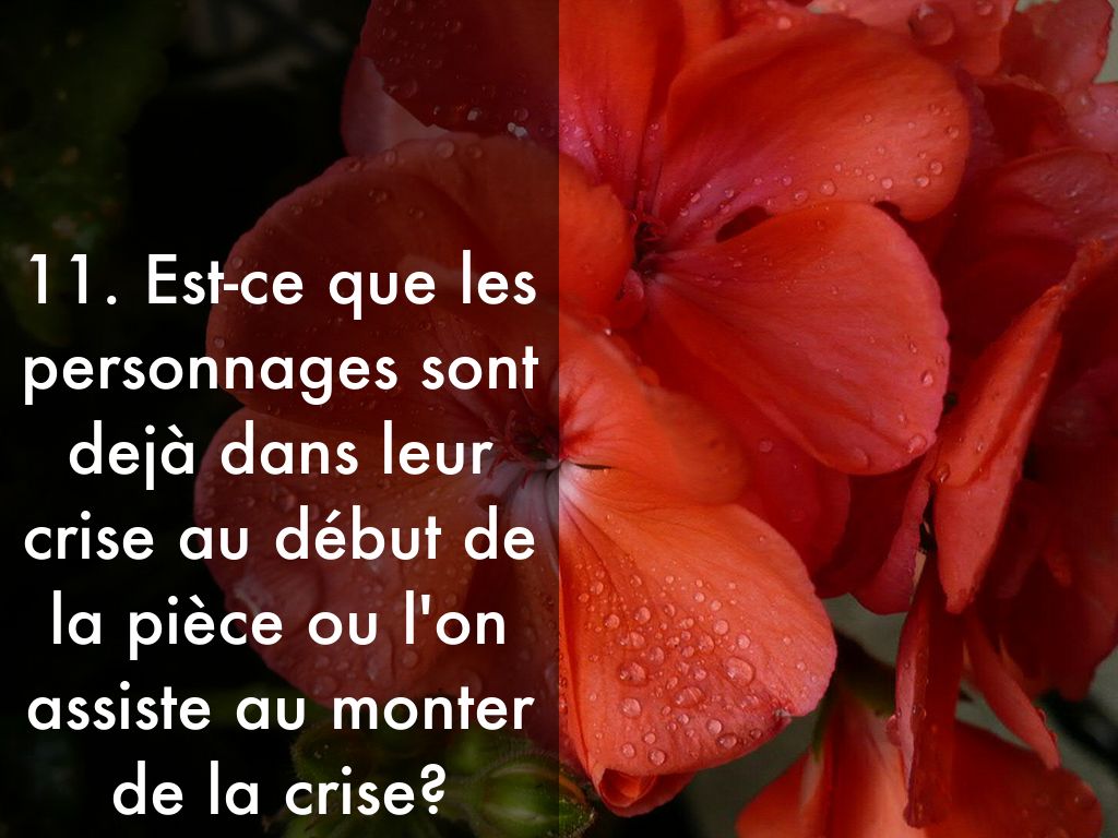 11. Est-ce que les personnages sont dejà dans leur crise au début de la pièce ou l'on assiste au monter de la crise?