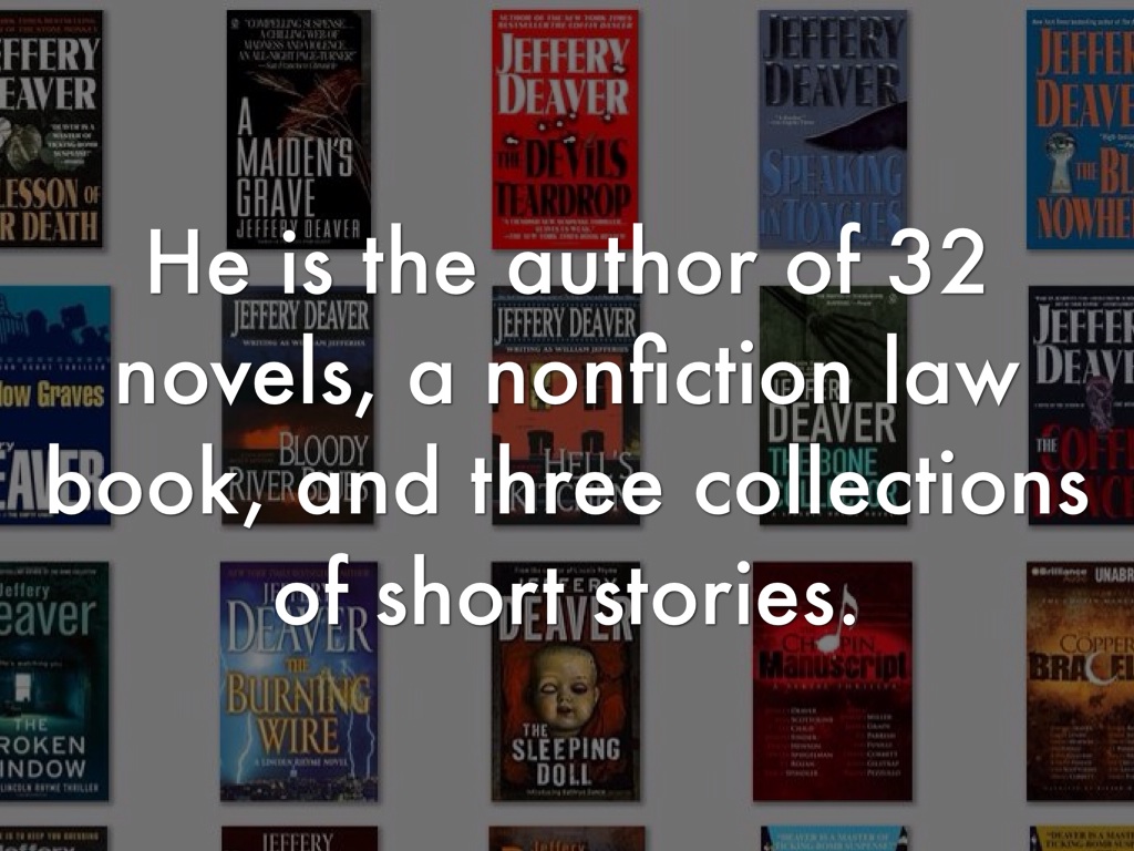 Jeffery Deaver is an international #1 best selling author. His books are translated in over 25 languages and sold in over 150 countries.